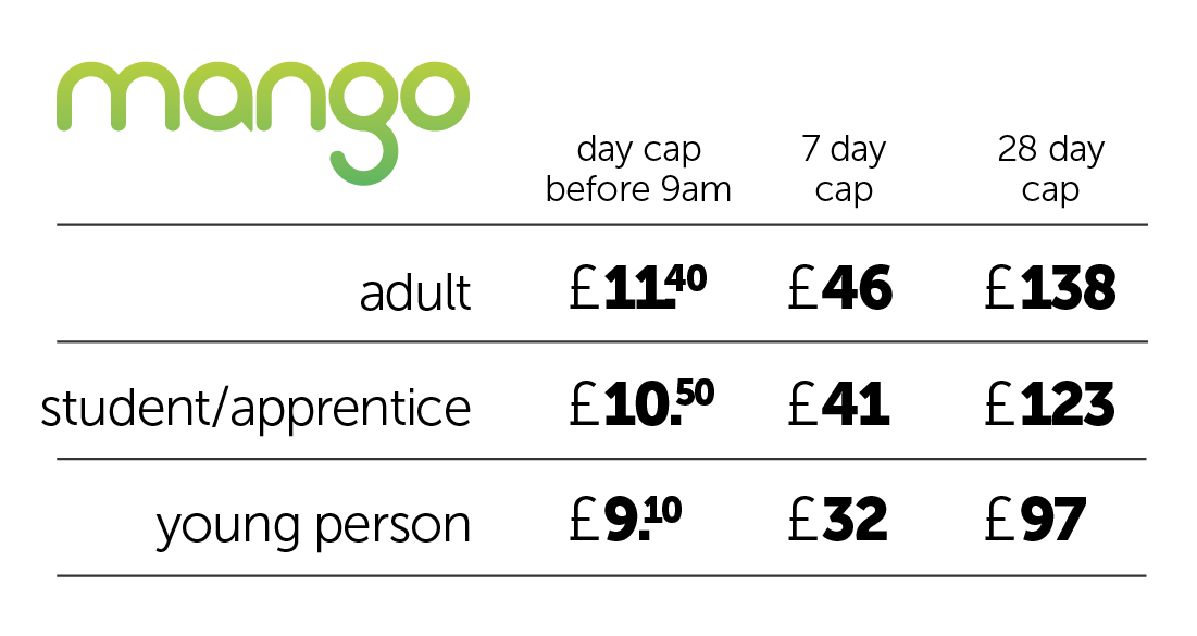 mango will change in line with cash fares but will continue to maintain up to a 10% discount on cash singles for adults, excluding £3 capped fare. Discounts for other concessions are also